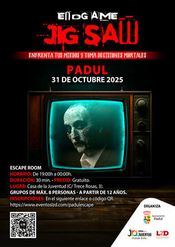 Este Halloween, el terror llega a Padul con el escape room más extremo inspirado en el universo de Jigsaw. Tendrás 30 minutos para superar las macabras pruebas que pondrán a prueba tu ingenio, tu nervio y tu trabajo en equipo.